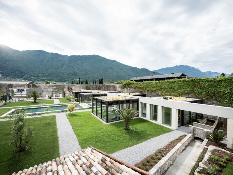 The mission was to renovate the Monastery Serve di Maria Addolorata in the centre of Arco, situated at the northern tip of Lake Garda. The complex is encompassed by a high surrounding wall and dates back to the second half of the 17th century. Half of the monastery building – which also hosts a church and cloister, where nuns continue to live – has been left untouched and in 2020, work on the hotel project began in close collaboration with the Trento Office of Cultural Heritage.