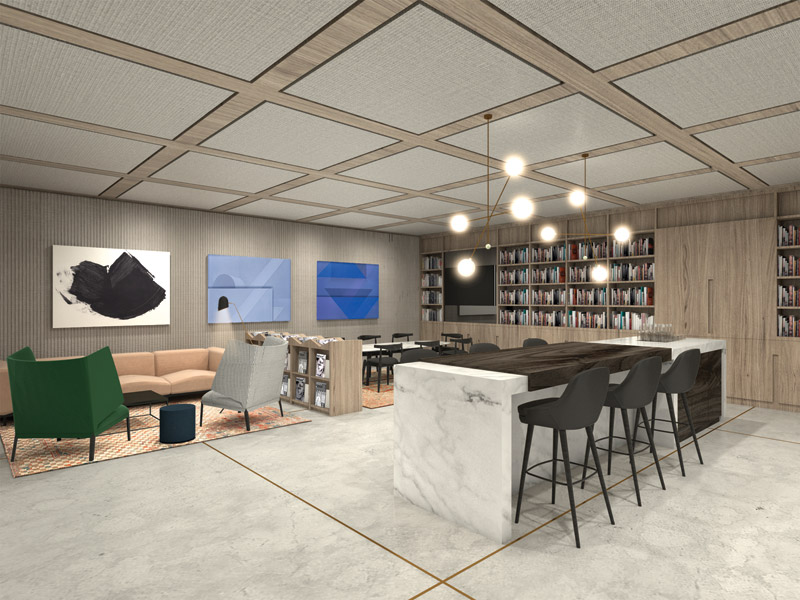 The corporate meeting rooms were redesigned as multifunctional spaces for a range of events from cocktail evening and fashion shows to yoga classes and breakfast seminars.