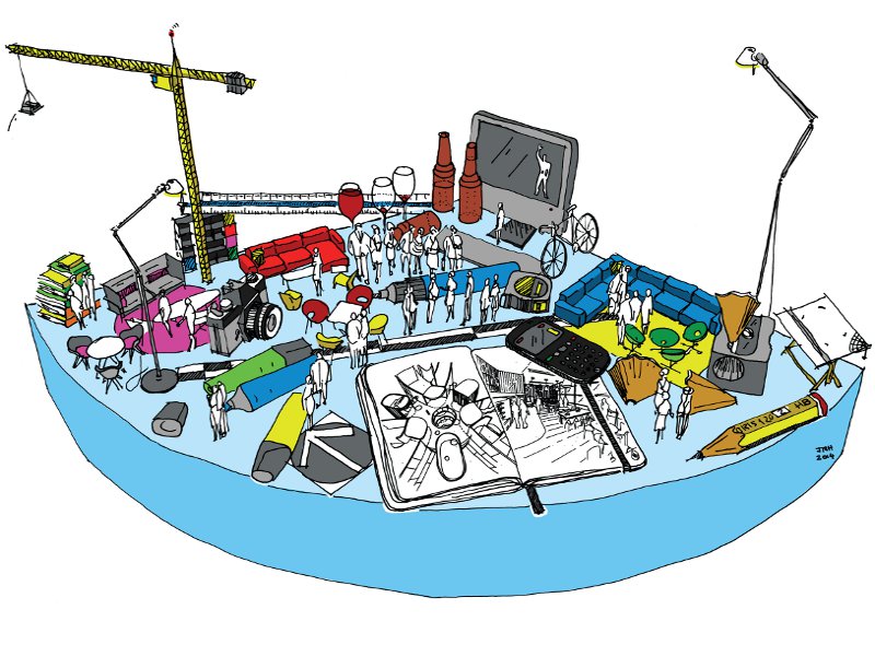 A year of design gets us face to face with a wealth of people, from clients and construction teams through to account holders, competitors and the public - all of which is essential to coordinate, deliver and remain inspired. This illustration depicts what the upcoming year could look like: the variety of industry collaboration we might be part of and the tools that will aid this.