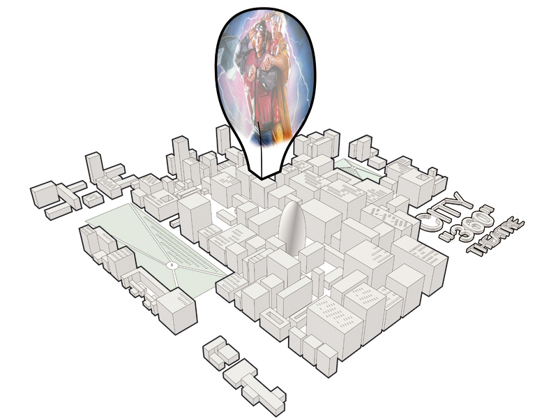 Imagine a city where the lost spaces of parks, plazas and rooftops are brought to life with scenes of people interacting while a film floats high above; silent images displayed on a soft, cloud-like fabric, supported by a lightweight super-structure. This temporary beacon needs the ability to deflate or inflate based on its use, and provides a much-needed contrast to the hardscape of the ever-growing concrete jungle.