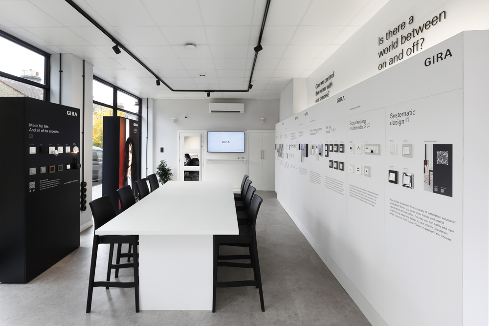 With experts on hand to guide retail and commercial customers through the new possibilities of an intuitive building, the brand new Gira by INTALITE UK showroom will cater for system integrators, architects, property developers and homeowners. Created to serve both commercial and retail customers, this fully immersive showroom will combine interactive light boxes with conversation starting displays, so that customers can get a better understanding of the features and benefits of intelligent homes: including climate, light and blind control alongside award-winning Gira Design Lines for switches and sockets.