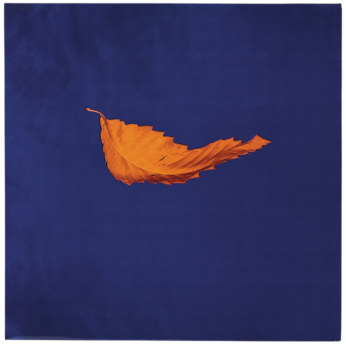 Like a contemporary reinterpretation of Warhol's acid coloured silk-screen prints, this in-camera technique took natural and inanimate objects and turned them into hyper-real, vivid, dream-like images. Against a background of Yves Klein blue, a solitary gold leaf is suspended in space; the image is counterbalanced perfectly against a neoclassical arrangement of Bauer Bodoni. Like the music, the image is open to interpretation; the design however is seminal Peter Saville.