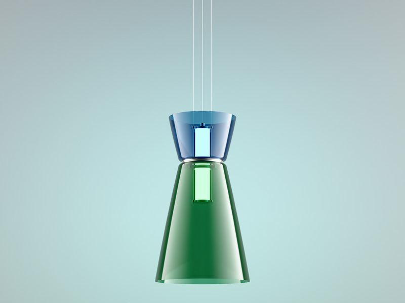 Diffusers – available in four different shapes in coloured glass and one shape in black – vary in size and width, and are conical with a slight curvature that softens the silhouette. Colours range from warm to cool tones that can be combined to be complementary or contrasting.