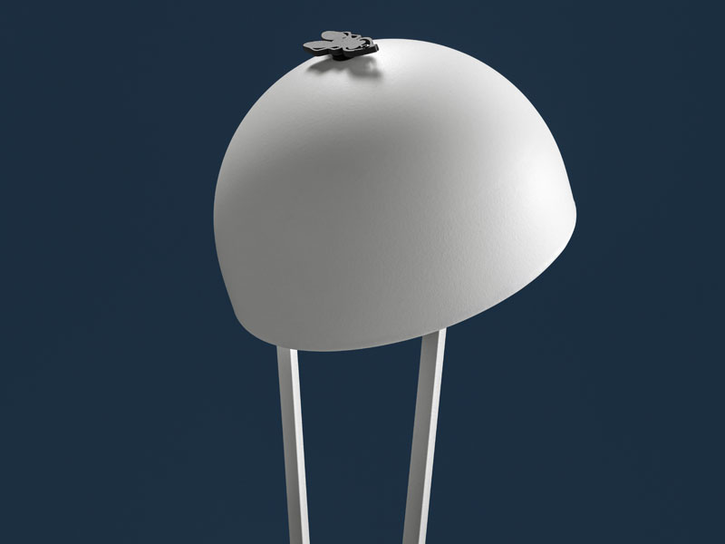 It certainly wins the prize for an ingenious way to conceal a fixing. The fly resting on the dome is a quirky detail that hides the screw which attaches it to the base of the lamp (black fly on the white version and white on the black version). As well as black and white, Ale BE T also comes in a vibrant fluo-painted version (orange, blue, yellow and magenta), and with a punchy combination of the primaries, blue, red and yellow.