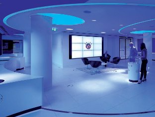 The IBM Forum London is a 1,740sq m business and conferencing facility for clients and partners, comprising a conference suite with nine meeting rooms around the building perimeter, with river views. The Innovation Centre, arranged around a central courtyard, is a showcase area featuring a changing exhibition and audio-visual displays (interactive demonstration units, static graphic and animated multimedia walls) depicting the computer company's past and present.