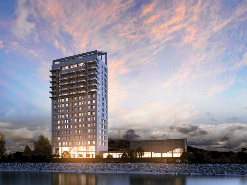 Mjøstårnet in Brumunddal, Norway, which was completed in March 2019, now holds the title of the world’s tallest all-timber building, with even its lift shafts being made from CLT. It is 85.4m high and has 18 storeys, mainly apartments with some retail and office space. All the timber was sourced locally. Architect: Voll Arkitekter. Client: AB Invest. Timber structure: Moelven Limitre. Image credit: Moelven.