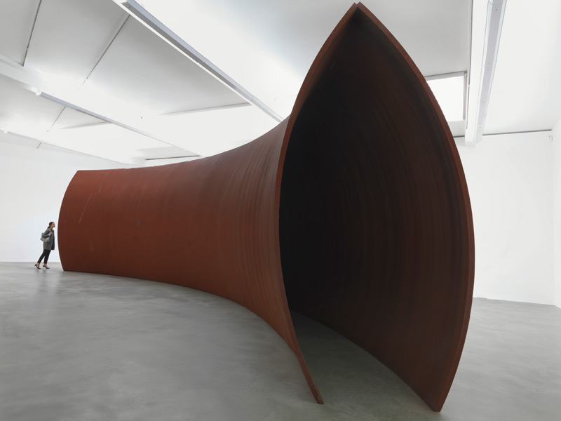 Backdoor Pipeline (2010), which took three years to make, coaxes you through its 4m-high, 15m-long, curving, dark tunnel. Gently concave on one side, convex on the other, and allowed to oxidise fully into a rich, rusty orange, it echoes the torqued works that helped make Serra's name in the Nineties. Nothing similar had been attempted before, and Serra worked with aeronautical engineers to devise a way to curve gargantuan steel plates. Standing free with grand elegance, these distinct, tilted spirals, ellipses and spheres are on permanent display in public spaces and museums across the world.