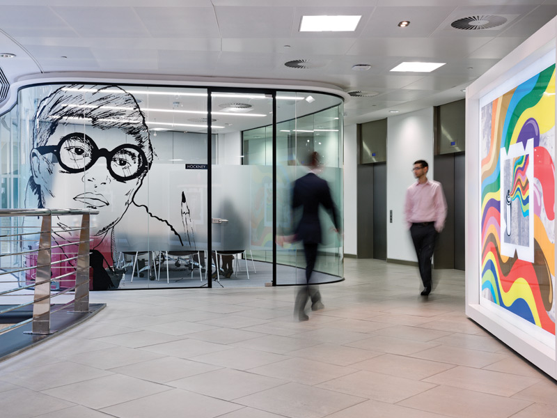 Talent and sports agency the Creative Artists Agency wanted an environment with a 'wow' factor for its high-profile clients in its new premises in Hammersmith. The reception has a very British feel with its quirky design and Union Jack seats