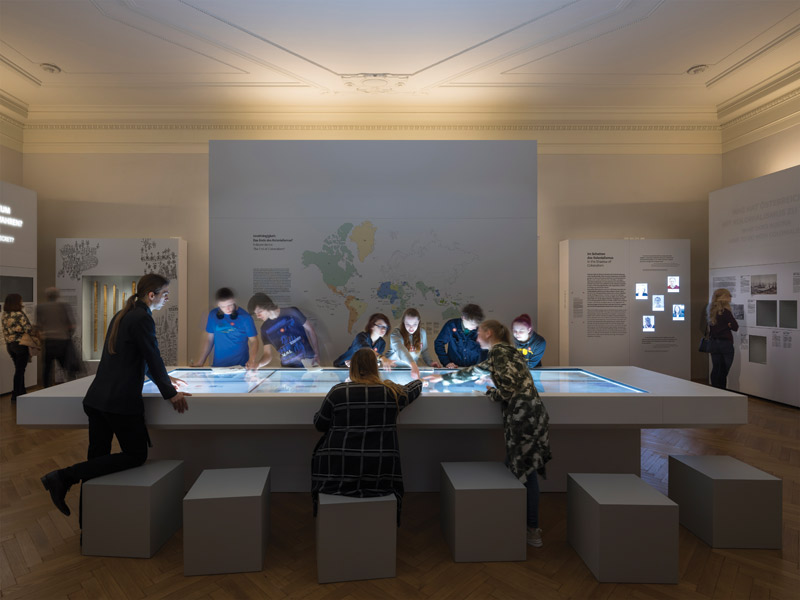 Won as a joint competition bid by Hoskins Architects’ and Ralph Appelbaum Associates’ (RAAI) Berlin offices, the new Weltmuseum (world museum) was conceived as a ‘necklace of stories’, which explore what unites as well as what as differentiates world peoples and their cultures. Arranged around a central columned hall, 14 individual galleries fall into two categories: one a more purist presentation of the objects themselves (‘collection halls’), the other around concepts (‘concept halls’) such as religion – from the story of Himalayan Buddhism told through the collection, to the Catholic church’s sponsorship of expeditions around the world through its missionary work.
