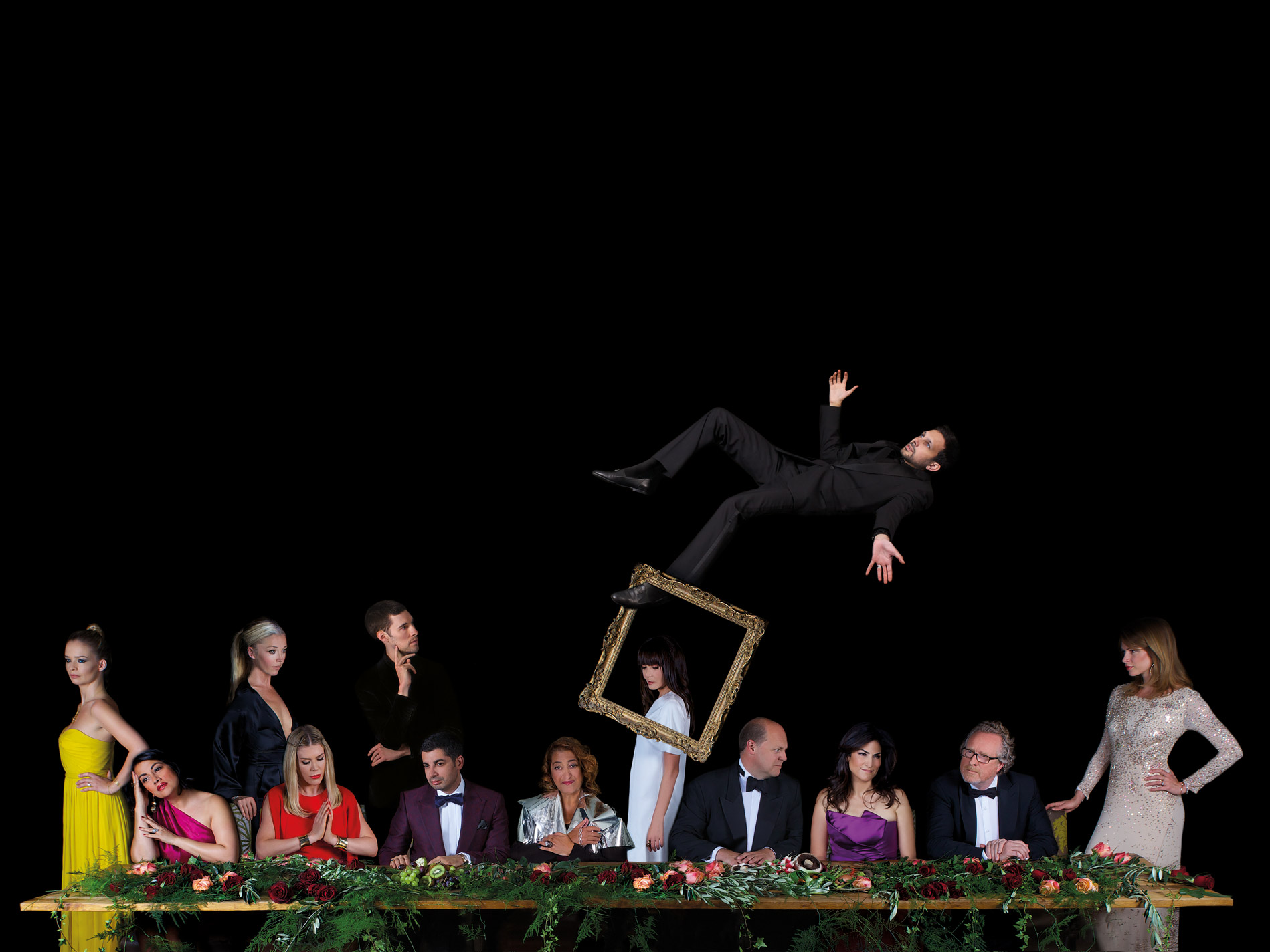Photographer Alistair Morrison, recognised for his famous 'Actor's Last Supper' (below), recreated the original (featuring Robert Powell) with key figures and many of the leading supporters of NSPCC 2015 Zaha Hadid, Francis Sultana, himself, Nazy Vassegh CEO of Masterpiece and the magician Dynamo who performed along with Emilie Sande (see main image). One of the key auction items that had guests showing their competitive side was the chance to have Morrison take their photo, remaking the iconic image.