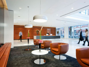 The building features a number of terraces offering views over London and natural light fills the double height reception area thanks to the main light well. The overall design makes as much use of the natural daylight as possible while featuring high performance glazing, minimising the effect of solar heat gains.