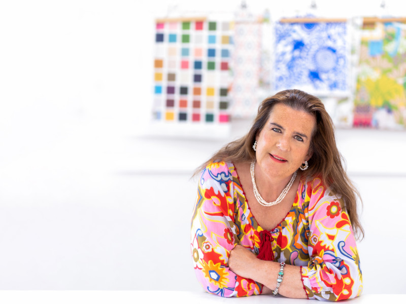 Who Meet Charlotte Gaisford, a British fabric and wallpaper designer and MD of the eponymously named company. She designs fabric and wallpaper collections for the interior industry with a global reach, but with success in the US. Prior to starting this company, Gaisford owned another business called Crafty Computer Paper, and in 2005 was given the Woman in Business award for the north-east of England. She opted for a career change: ‘I went to Newcastle College as a mature student and achieved a first-class honours degree in Textile Design,’ explains Gaisford. ‘[It] was very hands-on and centred on constructed textiles. I graduated in 2015 at the age of 50.’