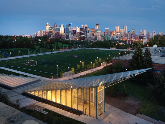 The ultimate 'car park as campus asset' has to be Vancouver-based practice Bing Thom Architects (BTA)'s sleek, low-key, three-storey scheme for the South Alberta Institute of Technology (SAIT), commissioned to rationalise scattered parking across the campus into one spot and free up valuable land. Completed in 2011, this 35,000 sq m building is sunk into an existing hillside to minimise visibility and support the campus's full-sized playing field on its roof, leaving only the east and south sides of the parking lot fully visible. Glass pyramids articulate the staircase and entrance atria. But the real masterstroke is the pixilated, undulating metal facade that reflects light and cloudscapes across the Alberta prairie sky.