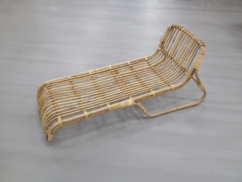 Jassa, a collection of furniture made of rattan, inspired by the craft traditions of Indonesia and Vietnam, is mass-produced but with a hand-made aesthetic. Hein Eek initially worked with steel and rattan, but changed to 32mm-diameter red rattan to provide the structural support for his recliner and table, with a narrower gauge for the surface covering. The pieces look rather African, do not shout Hein Eek, and seem only a moderate tweak on existing designs in rattan. That, of course, is part of his philosophy.