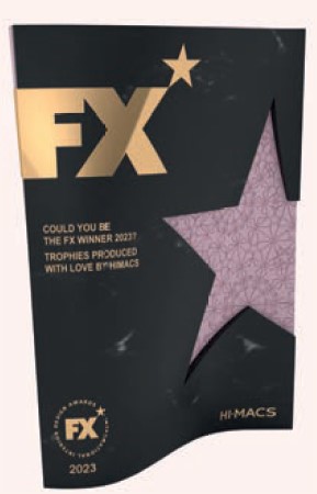 THE FX AWARDS return this month to its usual spot at the Grosvenor House Hotel, Park Lane, London on 29 November 2023 and we cannot wait for you to join us for a night to remember. This year’s compere and host Hugh Dennis will announce the winners at the glittering black-tie gala and present them with a fabulous trophy by HIMACS to celebrate world-class design excellence, in front of an audience of some 1,200 A&D members. The awards are judged by a panel of distinguished experts from our contract design industry, including designers, architects, engineers, and clients. Each year we invite a completely new panel of more than 20 judges from all disciplines, based on their authority, integrity, and experience. The party continues well into the night as we dance to live music and DJ sets, so brusho those dancing shoes and don your dazzling out-its once again for the FX Awards! See you on the night.