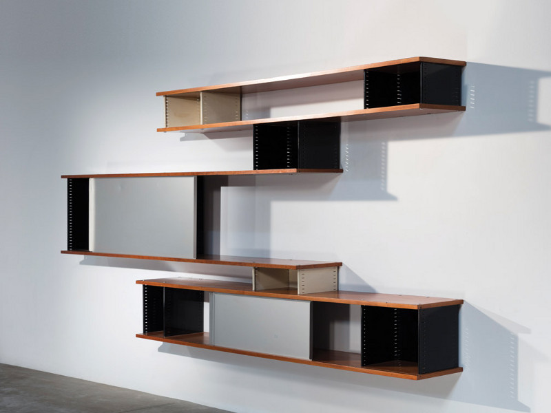 Cultural sensitivity was similarly reflected in the bright colours of the Nuage bookcase/room partition, manufactured by Ateliers Jean Prouvé, that she designed for the rooms of Mexican and Tunisian students at the Cité Universitaire, a university residency in Paris in 1952. Indeed, Perriand would revise her approach for each commission, inventing a system of leather sliding rails that could conceal paintings and drawings for a Parisian collector’s apartment (1976).