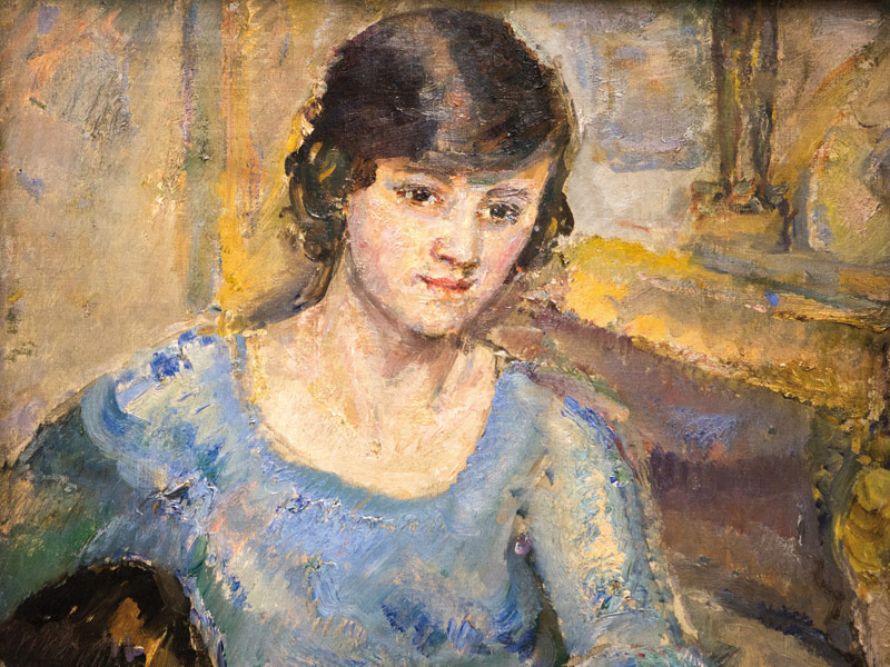 Hepworth's portrait by Walker anchors the room. Commissioned by Hepworth's father and shown publicly for the first time in 90 years following its auction, acquisition and recent donation, the painting presents Hepworth looking down, her slender, girlish limbs painted cream with blue undertones, appearing graceful and pliant. It's an image at odds with the later, more familiar images of the fiercely independent sculptor.