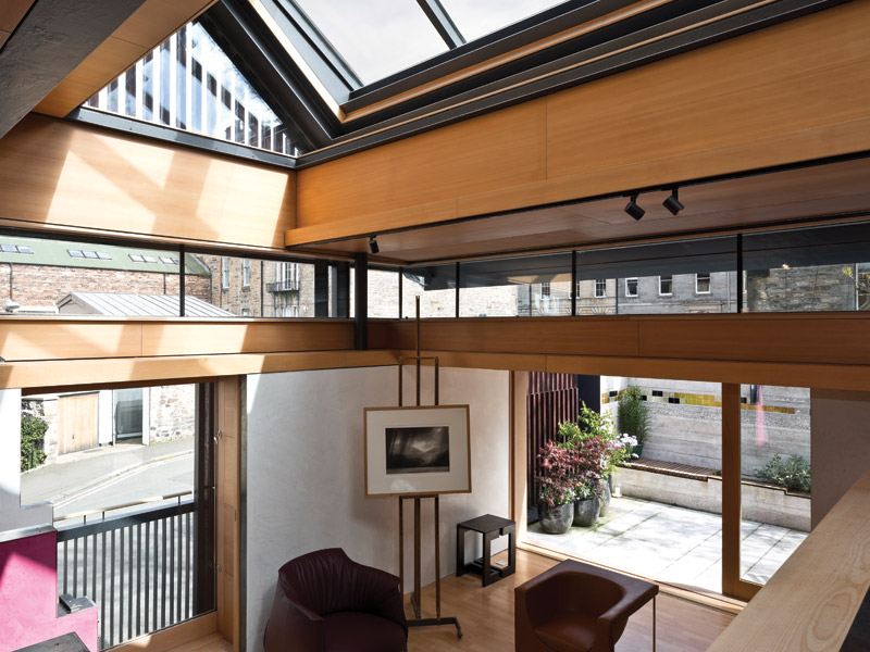 For Murphy, who set up his practice Richard Murphy Architects in his adopted city of Edinburgh in 1991, it’s a fusion of a lifetime of influences and inspirations — a melting pot of homages to the Arts and Crafts and medieval Scottish architecture, tributes to John Soane, elements from Frank Lloyd Wright, details from Carlo Scarpa and traces of Adolf Loos, all tightly packed into the restrictive 66 sq m footprint. It’s a fascinating, complex home full of clever details that delight and unfold even more unexpectedly within. Murphy freely admits that the house is ‘perhaps over-designed’ for such a small project.