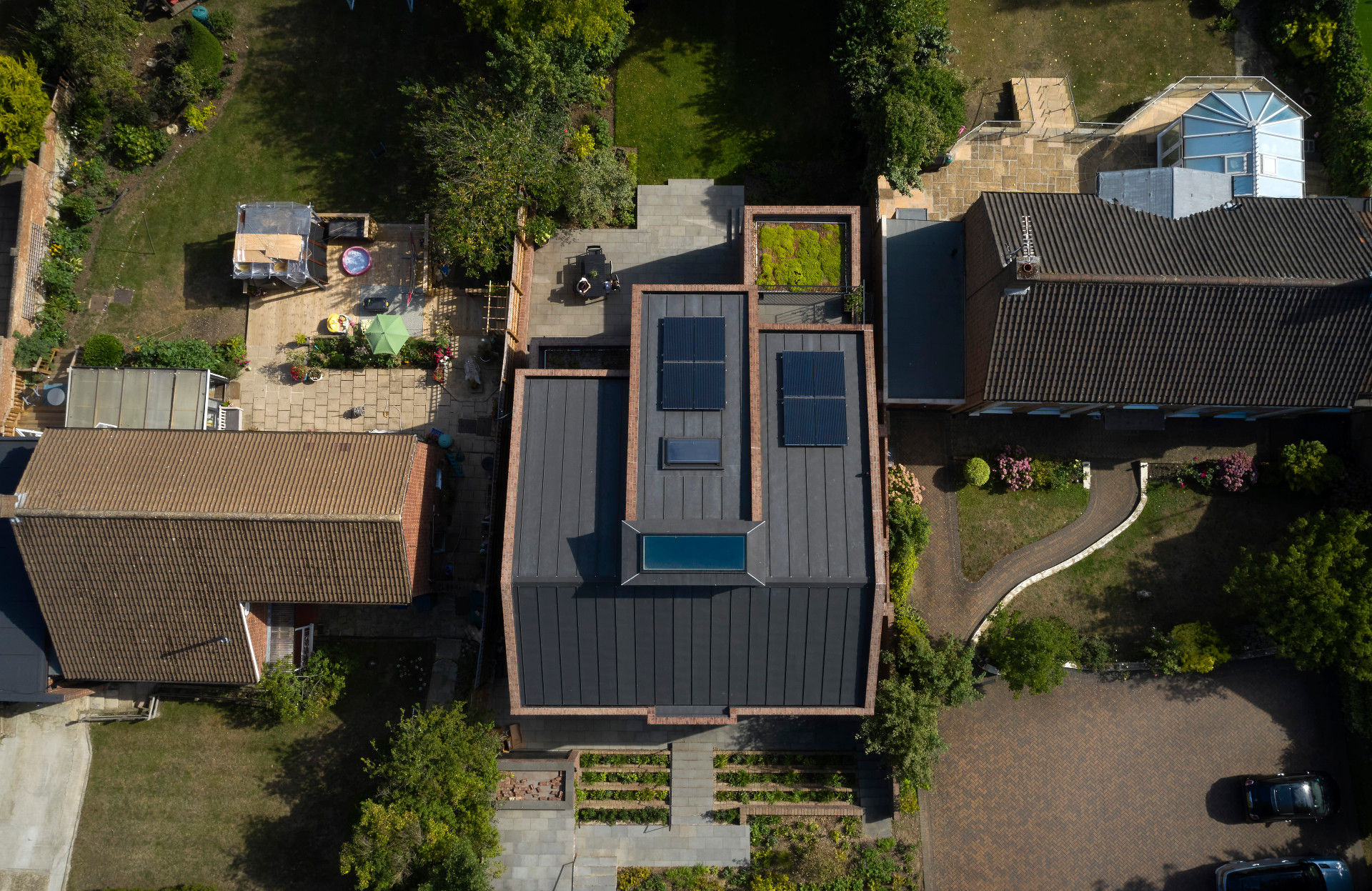 The design team have used several Passivhaus principles for this project, resulting in a house that has several ‘green’ features. These range from green roofs to high performance glazing, and from a mechanical ventilation heat recovery system to solar panels. It was important that the project minimised its environmental impact and energy consumption, and – like the other services in the house – these systems have been subtly integrated within the design, to blend in with the rest of the building.