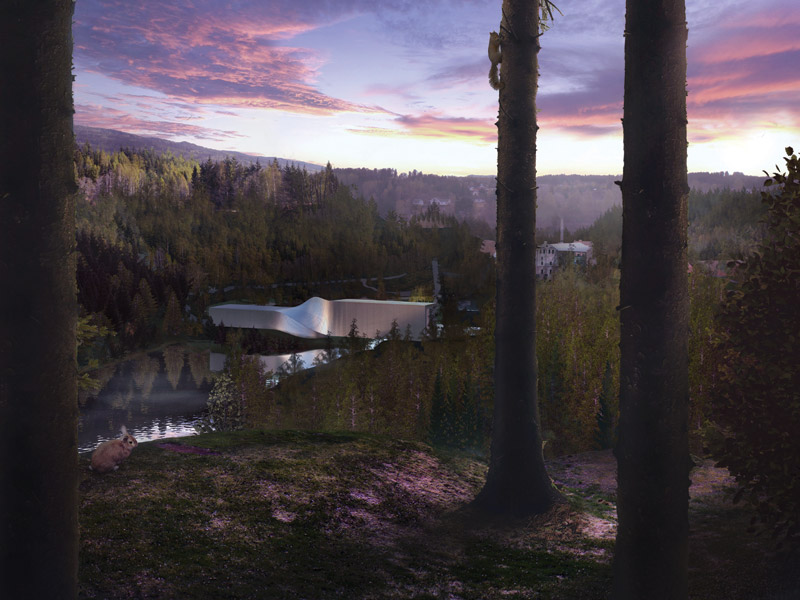 Kistefos Sculpture Park is a cultural legacy project with a difference: established in 1996 on the former site of Norwegian businessman and art lover Christen Sveaas family’s wood pulp business, outside of Oslo, Sveaas has tried to create a space that honours nature, art and also the site’s industrial heritage. As of September 2019, the existing industrial Museum and Art Hall will be joined by a curious new structure by Bjarke Ingels Group (BIG). The scheme, which BIG won through an international invited competition, provides not just gallery and visitor space but a way of uniting the north and south parts of the park, currently divided by the Ranselva river. Bjarke Ingels has dubbed his project an ‘inhabitable bridge’, suggesting it is not so much architecture as a hybrid of architecture, infrastructure and sculpture. Its current nickname is The Twist, thanks to a simple twist that happens at the midpoint of the bridge section in this 1,400sqm building, which lifts it up from the lower riverside area to create stacked galleries with glazing that opens up vistas to the south and the forested hillsides.