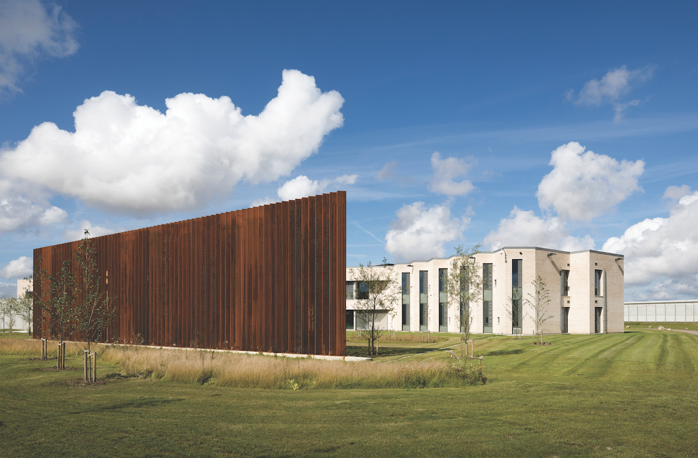 Storstrøm Prison, on the island of Falster — roughly 115km from Copenhagen — has been designed by Danish architecture practice CF Møller for the country’s Prison and Probation Service. Following a design competition in 2010, work started in 2012 and the 35,000 sq m complex opened late last year.
