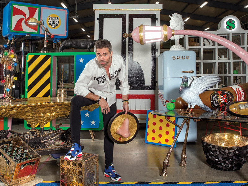Today, he’s ‘feeling very at home’ in Italy’s design capital, combining work and play with a group of creatives that he says ‘could be the new Memphis’. It includes artist Maurizio Cattelan, Gufram owner Charley Vezza and Stefano Seletti, who is at the helm of the design brand that bears his surname. ‘I was accepted as one of the guys — I was always on my own before,’ Smeets says, laying bare some of his psyche. He adds that it was freeing being able to work and socialise with designers, artists, fashion designers and musicians; developing projects together without having to define where one creative discipline ends and another one starts. He has form in this type of cultural cross pollination: he and his good friend Rolf Snoeren (of Dutch fashion label Viktor & Rolf ) were the creative thinking behind the slogan dresses that set Instagram a-liking early this year, with millennial-friendly motifs such as ‘Sorry I’m Late I Didn’t Want To Come’ and ‘I’m Not Shy I Just Don’t Like You’.
