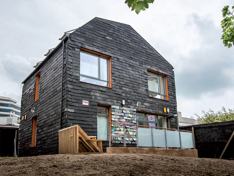 The Waste House is - as its name suggests - almost entirely made of waste. It sits just behind the University of Brighton's College of Arts and Humanities building in the centre of town. Handsomely clad in black carpet tiles (21st-century eco-shingle?), this spacious, two-storey structure could function happily as a home, but for now it remains a multifunctional research and events space for the university and a built-environment ambassador for a more sustainable kind of construction. Lest we (the massed ranks of designers and architects who read this magazine) forget, the architectural construction industry is responsible for 45 per cent of all carbon dioxide emissions in the UK.