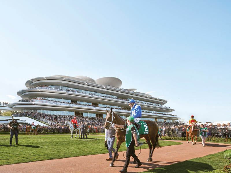 In recent years there have been a string of new stands: both Ascot and Royal Randwick in Sydney in 2006, Aintree in 2007, Epsom in 2009, Goodwood in 2010, Meydan in Dubai 2010, Cheltenham in 2016, the home of the Melbourne Cup, Flemington Racecourse and ParisLongchamp in 2018. This year will see completion of a new canopied grandstand designed by Grimshaw and Newenham Mulligan at the Curragh in Kildare, home to Ireland’s five classics. A new pavilion is underway at Saratoga and plans have been drawn up to renovate the longest dirt racetrack in North America at Belmont Park for the New York Racing Association.