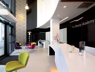 The beauty salons feature a darker colour palette and lower levels of lighting to create an luxury-ambience feel often found in spas.