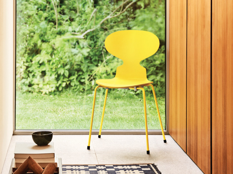 Jacobsen’s playful 1952 design was shaped to look like an ant with its head raised. Available in the (original) three- and (later) four-legged versions, Fritz Hansen’s re-release targets a new audience with new colours (pale yellow, pink and grey) and a lower price point.