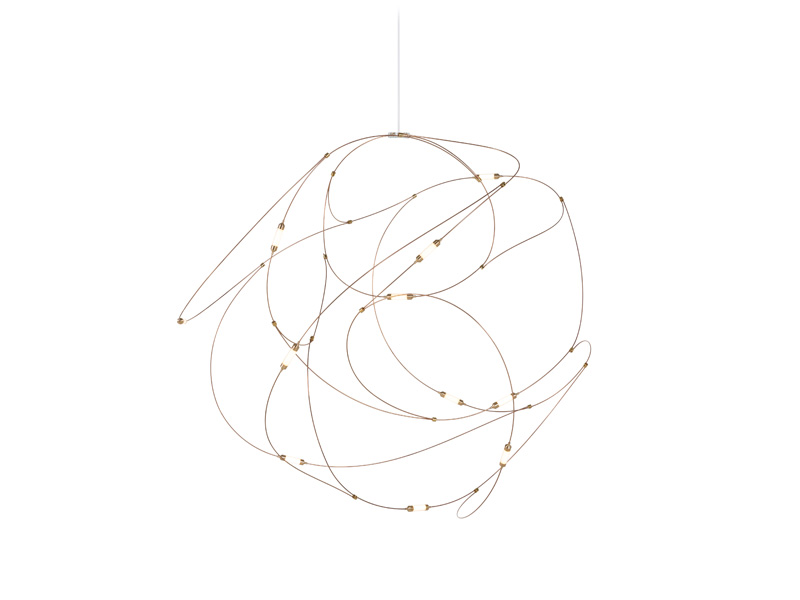 Inspired by a drift of fireflies captured in motion, dimmable LED lights sit on curving metal wires. Derived from a public art installation by Studio Toer, the studio has adapted the design for sale from Moooi. It is available to purchase in two sizes. moooi.com