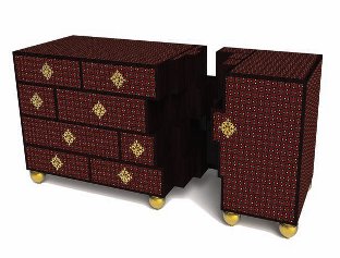 Taking its name from the lotus flower, which is symbolic in many cultures, the Lotus desk is like a traditional baroque-period writing desk, but with contemporary twist. One side of the desk looks traditional, with white lacquered wood and gold handles, but there is also a much more modern cupboard at one side. The idea, say the designers, is 'the transition from the hard and cold winter to the blooming and joyful spring which we love so much. It is a paradox: classicism morphing into deconstruction in a surprising hybrid'.