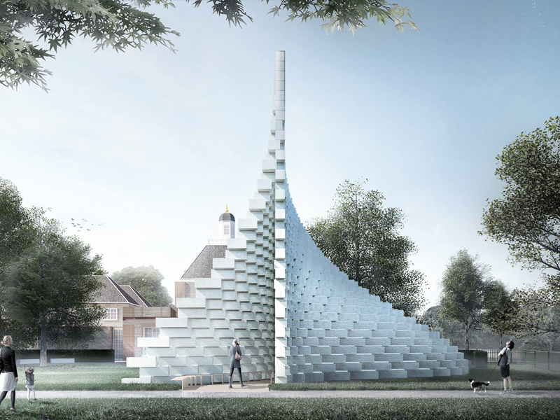 1 Bjarke Ingels Group (Big) pavilion BIG's pavilion will host a café and family activities during the day to transform into a space for 'Park Nights' after dark, with a programme of works featuring writers, artists and musicians.