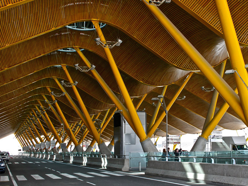 The creation of architects Antonio Lamela and Richard Rogers, Terminal 4 of Barajas Airport was opened in 2006. Based on a modular design forming a sequence of vast waves in prefabricated steel, the airport is designed to guide the passenger's journey through the building. Using a simple palette of materials and a controlled manipulation of natural light, the overall impression is direct and uncompromising, while an unusually bold use of colour creates a sculptural feel.