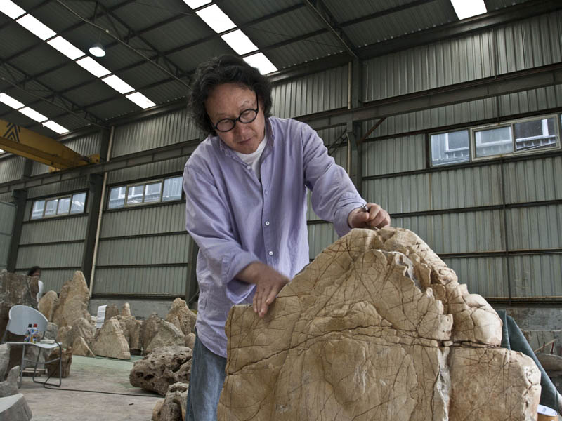 The 'dream-like landscape' will be created around the central water feature of the John Madejski Garden, built up from layers of thinly-cut stones collected from five different places in China to represent mountains. Clusters of ceramic houses, each one handmade and coloured to reflect the diverse traditional styles of houses from the different provinces, will be placed among the stones. For example, rocks taken from the Tai Hu Lake in the lower Yangtze River region are accompanied by houses in Suzhou garden style. The same meticulous detailing also applies to the positioning of particular ceramic animals in relation to the type of stone.