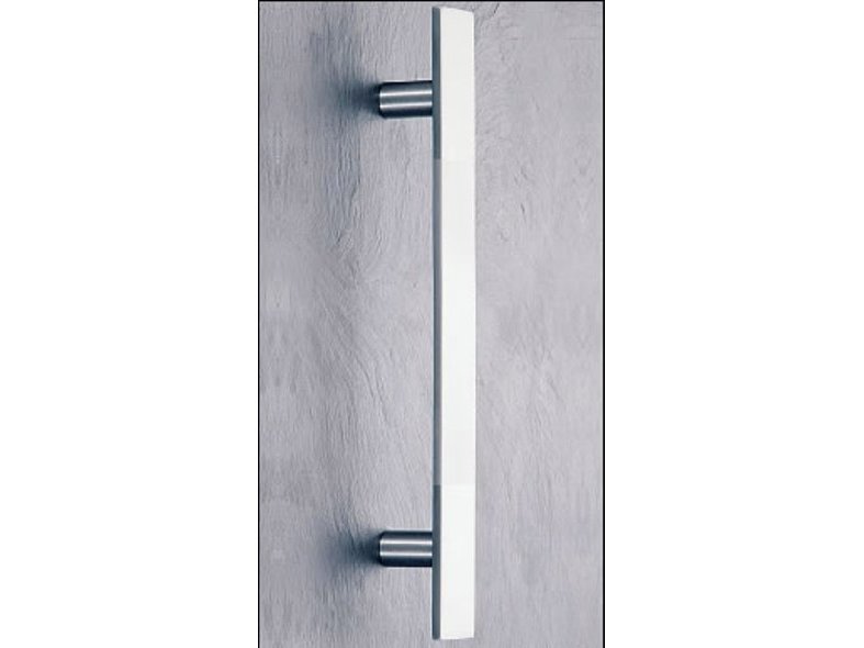 ASH 235 designer pull handle comes in a flat ski stainless steel with square ends and round mounting posts.