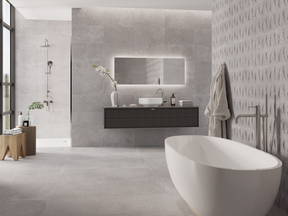 Avenue by Cristacer is a cement-effect porcelain offered in 60x120cm, 59.2x59.2cm and 29.2x59.2cm formats
