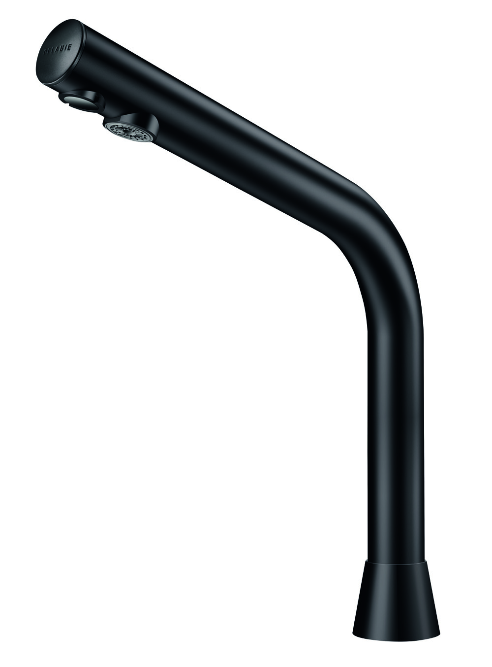 Tallest standing tap - BINOPTIC H. 250mm, Ref. DELABIE: 398035 (mains) and 498035 (battery). The BINOPTIC range makes its entrance into modern spaces in matte black. 100% black chrome design providing optimal resistance to intensive use, 90% water and energy savings, anti-bacterial proliferation smooth spout interior, regulated flow rate, duty flush programme for complete hygiene, presence detection and no manual contact. Nothing is missing from this blend of technologies.