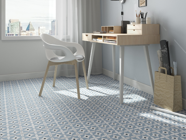 Porcelain floor tiles in a 20cm x 20cm format give a fresh contemporary update on the cement look.