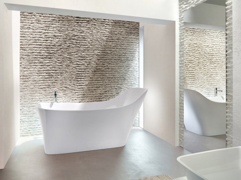 Buying a bath is all about comfort and luxury. Stunning stone baths are being installed in bedrooms, dressing rooms and even in the gym. The Nebbia bath by Clearwater Baths, is just one of a new range of over 30, has been moulded around a human body to provide support in all the right places - no need to prop the body up with your feet at the far end.