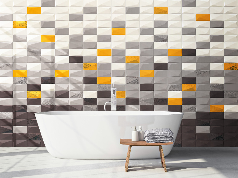 Diamond wall tiles in a 10x20cm format by Mainzu come in a variety of colours including Tiger, Artic, Graphite, Pearl, Esmerald, Green, Rubi and Sapphire.