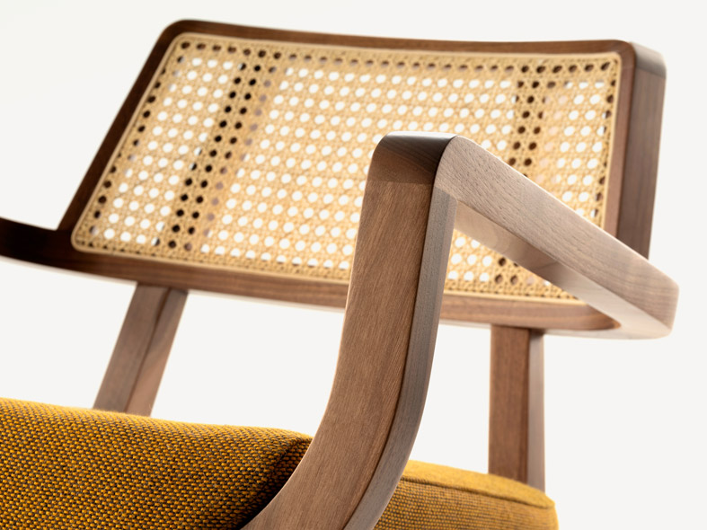 Including the increasingly popular woven cane detail this collection is tactile, warm, and relinks contemporary design to traditional artisanal techniques. The collection has an emphasis on space and light, evoking an atmosphere of ‘komorebi’, the Japanese word for the sunshine filtering through leaves. As with a lush woodland, Kaya’s serene frame finds strength in numbers. Individual timber sections have been kept small with multiple lightweight supports in place of a single, larger component.