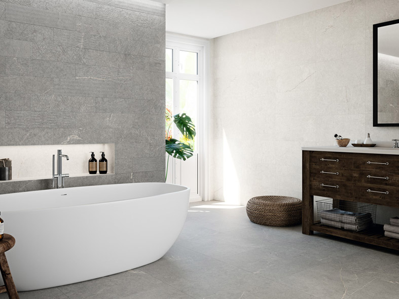 Available in four colourways – Blanco, Arena, Gris and Antracita, Niza is a porcelain format for wall and floor that comes in five sizes. 60x120cm, 60x60cm, 30x60cm, 14.5x60cm, 30x120cm