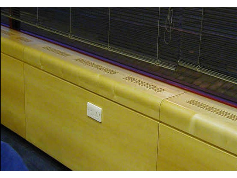Other veneers and finishes are available, including high pressure laminates. Please contact us for details. We can also provide casings in steel or aluminium, powder coated to a colour of your choice. Removable front panels are an option, as used in this installation.