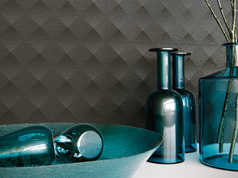 Zirconio’s Silver Prisma playfully uses geometry to create a gentle undulating surface of softened diagonals. Other innovative designs in this 30x90cm format include Tokio and Geo.