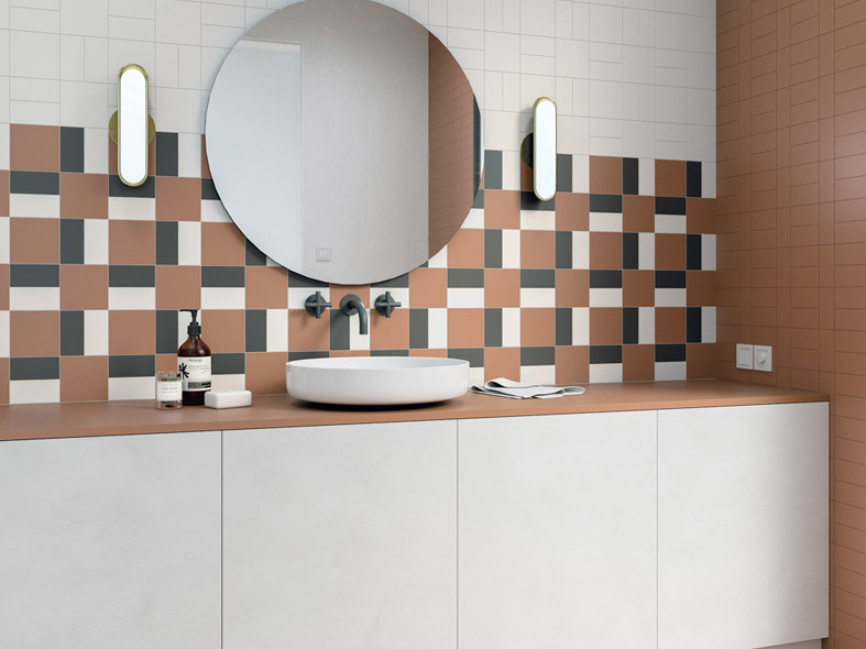 Porcelain wall tile by Tendencias (Wow Design) in matt colours including chalk, cotto and basalt and available in a variety of formats including 6.25x6.25cm, 12.5x6.25cm, 12.5x12.5cm, 12.5x25cm and 25x25cm