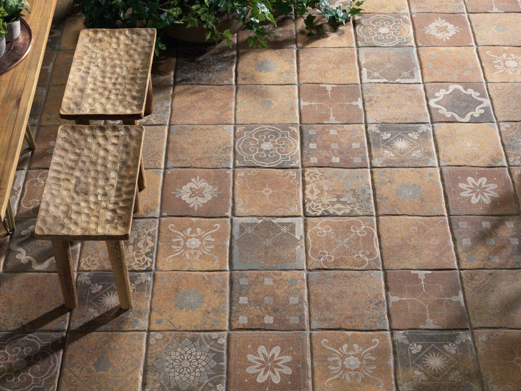 Extruded porcelain tile that’s 14mm thick, anti-slip and ideal for outdoors and in. Available in eight formats including 22.5cm x 22.5cm (shown) and three finishes.