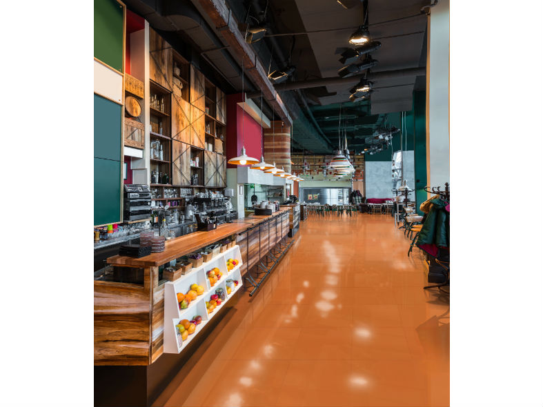 High-performance Todatech porcelain by Todagres uses vibrant colour to add impact to a vast public space. Ideal for high-traffic areas, these polished 60x60cm tiles are available in a choice of 10 solid colours.