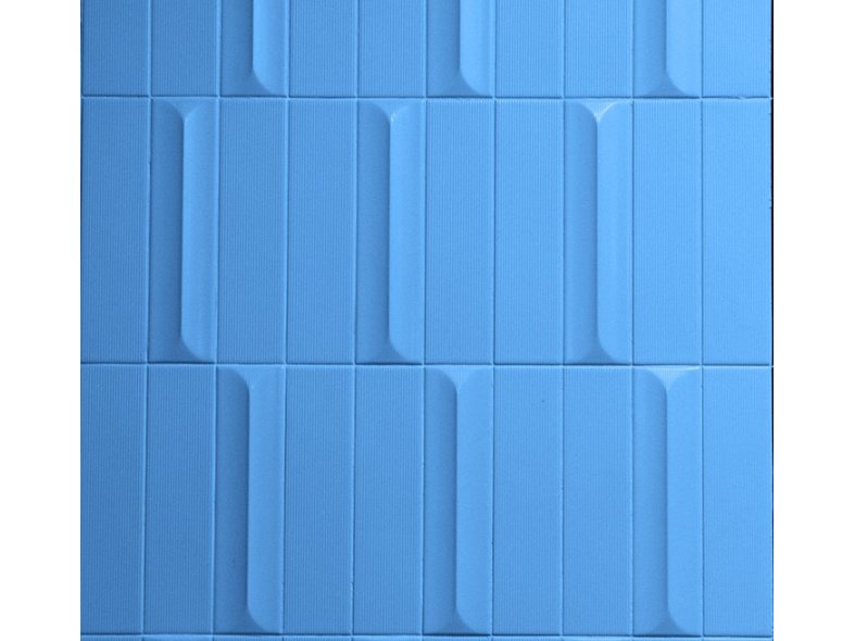 Ceramic wall tile with a geometric relief in pastel blue with a satin finish, 7.5x30cm.