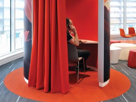 The Designs of the Year Award-winning Plumen light bulbs, designed by Samuel Wilkinson, have been used above the tea points. Much of the design is focused on what Joseph calls the 'in-between' spaces, those that are separate from the busy and often noisy work areas and provide alternative settings where staff can hold meetings or just enjoy some quiet time; all are supported by wi-fi.